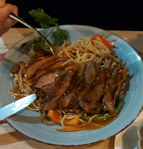 Ich habe mir eine WanTan Suppe und Reis mit Curry-Hühnchen zum Mitnehmen bestellt und nach 10 Minuten mitgenommen..Vorab: über Geschmack lässt sich nicht streiten. Was mir schmeckt, muss anderen noch lange nicht schmecken! Zurück zu meinem Essen. Die Suppe war hervorragend. Nicht überwürzt. Frisches Gemüse wie, Paprika, Bohnen, Zwiebeln, Möhren. Alles in feine Streifen geschnitten bis auf die Bohne. Die war in ganzer Länge mit dabei. Exzellent Gewürzt besonders der Hauch Zimt. Hervorzuheben sind die Anzahl der gefüllten Nudeltaschen. Endlich mal mehr als 4 Stück. Wer auf eine geschmackliche Abenteuerreise gehen möchte: Probiert die Suppe und entscheidet selbst in welchen Abenteuer ihr gelandet seid. Nun zum Curry-Huhn mit Reis. Ebenfalls ein geschmackliches Abenteuer. Zur Info: ich vertrage KEIN scharfes Essen. Auf der Speisekarte wird vorsorglich daraufhin gewiesen, dass das Gericht eine leichte Schärfe hat. Ich habe die leichte Schärfe als angenehm empfunden. Die leichte Schärfe rundet den Geschmack nach Curry, Gemüse und Huhn für mich perfekt ab. Auch in diesem Gericht war das saisonale Gemüse frisch. Ich für meine Person war außerordentlich und positiv über mein bestelltes Essen überrascht. Probiert es aus und entscheidet selbst, ob es euch schmeckt....