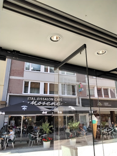 Mein erstes Eis in Höxter bei Mosena und das bei Schneetreiben! Es ist sehr schick dort, viele Jugendstilelemente im Interieur, gefällt mir gut. Aber letztlich geht es um das Eis, in meinem Fall um einen Amarenabecher ohne Sahne, nebst einem leckeren Kaffee, mein Standardgedeck bei italienischen Eismachern. Die Portion war preislich adäquat, der Geschmack so wie überall eben. Kein Ausreißer nach "oben" oder "unten". Ich würde den Amarenabecher mit d r e i Sternen bewerten, wäre da nicht die Freundlichkeit sowie die sehr persönliche Ansprache durch die Mitarbeiter. Richtig zum Wohlfühlen bei diesem Schietwetter. Der Kaffee erweckte "Tote zum Leben", genau soooo mag ich das! Also kurzum v i e r Sterne "all in" finde ich angemessen. Auch würde ich bei schönerem Wetter wiederkommen und dann einfach mal was Anderes ausprobieren...