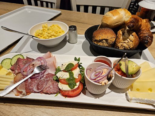 Read moreSamstag Nachmittag, 15:30 Uhr. Der Laden ist nicht voll, wir betreten ihn. Nach einer kurzen Wartezeit, die absolut auszuhalten war, wurden wir an Stelle von einem freundlichen Lächeln der Mitarbeiter*In, mit einem grimmigen „Hallo“ begrüßt. Nach einer kurzen Nachfrage im Themenbereich „Desserts“ haben wir einen Schoko-Sahne-Kuchen, einen Kakao mit Sahne und einen großen Kaffee bestellt. Freundlich haben wir uns erkundigt, wo man denn Milch und Zucker bekäme… Als Antwort kam nur ein lautes und direktes „VOLLMILCH, KONDENSMILCH UND ZUCKER“ mit einem Blick, den man sich nicht hätte ausdenken können.