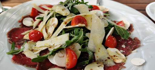 Read moreSteaks vom Feinsten! Das Restaurant war an einem Sonntag Abend gut besucht und voll besetzt, daher war es nur verständlich, dass das Essen nicht binnen "5 Minuten" auf dem Tisch stehen würde. Meine Bestellung, klare Brühe mit Tortellini, konnte leider nicht angenommen werden, da es keine Tortellini mehr gab, am Ende des Wochenendgeschäfts bedauerlich, aber ein stück weit auch verständlich. Legt es doch die Vermutung nahe, dass die Nudeln selbst gemacht wurden und kein Fertigprodukt waren, das kiloweise in der Vorratskammer lagert. Die Wartezeit bis zum Essen war der Belegschaft schon ein wenig unangenehm, aber nicht weil wir ungehalten wurden. Es hat tatsächlich etwas länger gedauert, aber dafür wurden wir mit Steaks der Extraklasse reichlich belohnt. "Butterzart", mit genau dem richtigen Gargrad, waren sie ein Hochgenuss. Auch die Saucen (Gorgonzola, bzw. Pfeffer) waren super lecker. Dass zum Schluss der Chef selbst mit einem "Wiedergutmachungs-Schnäpschen" an den Tisch kam, zeigt, wie sehr man sich um das Wohl und die Zufriedenheit der Gäste bemüht. Fazit: In Zeiten des Hochbetriebs bitte reservieren und etwas Zeit mitbringen, man wird dafür...