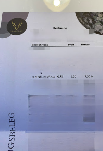 Was rechtfertigt es, 7,50 € für eine normale, gewöhnliche Flasche Wasser zu verlangen, die 2 Dörfer weiter hergestellt wird (kein San Pellegrino oder Évian o.ä.) und im Getränkemarkt für 0,85 (Endverbraucherpreis) zu haben ist? Sind wir Gäste zu dumm? Gehen wir sorglos mit Geld um? Haben wir von nichts eine Ahnung? Ich tippe auf Nr. 3