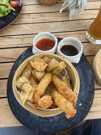 Read moreGrill and Chill? Surf and Turf? Da war ich aber geschockt! Egal wie sich diese Veranstaltung auch nennt, damit hat es wenig zu tun. Es gab eine kleine Auswahl vom Grill und zwei Fischarten. Es war schlechtes Wetter, also wird im Lokal gegessen. Wir sind davon ausgegangen, dass man wenn man zu zweit reserviert auch zu zweit sitzt und nicht an einem Tisch mit zwei weiteren Pärchen. Wir hatten noch Glück, ein Tisch weiter saßen fünf! Paare an einem Tisch. In dem Zelt? war es sehr schwül und frische Luft war rar. Nachdem wir unseren Aperol erhalten haben wurden wir einige Zeit später in die Küche geschickt. Keine Ahnung, wo die ist aber wir finden das schon. In der Küche angelangt und fein säuberlich in der Schlange angestellt wurden wir und unsere Mitgäste erst einmal angebrüllt, wir sollen uns nicht so anstellen und das Essen holen! Essensauswahl war überschaubar und leider nicht beschriftet. Macht es für mich mit Unverträglichkeit schwierig. Beim Essen wurde uns unser Platz dann weiter unangenehm: Jede Person, welche an unserem Tisch vorbeilief sorgte aufgrund des Bodens für wackelnde Stühle und Tische. Die Lampenschirme flackerten direkt ins Gesicht. Luftzug bzw. frische Luft gab es mal ganz kurz, doch dann wieder schwüle stehende Luft. Thema Getränke, uns wurde der Aperol ungefragt hingestellt und nach weiteren Getränken wurde erst gefragt, als wir schon fast mit dem ersten Gang fertig waren. Das für 120€ ?! Wir werden dieses Lokal in Zukunft einfach meiden und das Catering wird auch nicht mehr empfehlen.