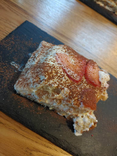 I had an amazing experience here! The cashier/ waiting staff were very friendly and nice and smiled all the time. It was my first time there, but I felt welcomed immediately. It's not like a "normal" restaurant as you have to order your food in the front and also pay directly and then you have to wait till a buzzer goes off to get your food. I like that as you can go whenever you want after you're finished and you don't have to wait till you can get attention from staff. The prices were good and not too much. I had pasta with mushrooms and a creamy sauce and my boyfriend had a pizza with salami, ham and mushrooms. He said that the pizza was crispy and the dough not too thick, which he likes better. My pasta was also very tasty and the portion which looked rather small at first turned out to be enough. I also got some bruschetta for free on top of that! As for dessert, we had a classic Tiramisu and a strawberry Tiramisu, both without alcohol. The strawberry Tiramisu was heavenly, as there were strawberries on top, but also in between the layers so that every bite was creamy and fruity at the same time. If you like a lot of cream then you're well served with this one. All in all a wonderful experience and I'm sure to eat there again, if I'm...