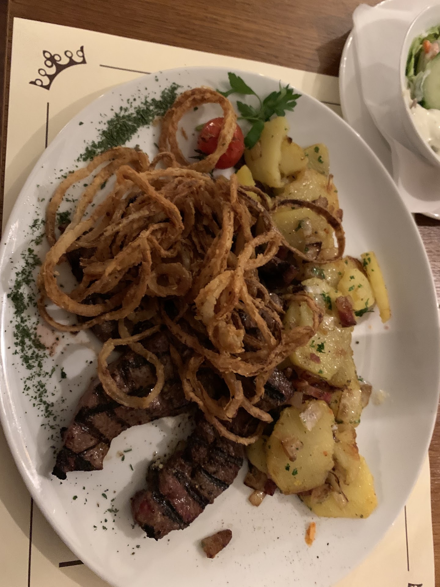 Wir haben uns für einen Abendessen im Restaurant "Zur Krone" entschieden nachdem wir im Internet durchaus positive Rezensionen gelesen haben. Leider haben wir das Restaurant anschließend ziemlich betrübt verlassen. Mag sein, dass wir beide ziemlich verwöhnt sind durch unsere häufigen Aufenthalte in Kroatien, aber das was wir so gerne im Urlaub genossen haben, konnten wir bei diesem Besuch leider nicht im Entferntesten wiedererkennen. Die Bedienung( eine junge Dame) war sehr freundlich und stets bemüht um unser Wohlbefinden. Ambiente ist Geschmackssache und für das Gesamtergebnis für uns nicht entscheidend. Hauptsache ordentlich und sauber, so war es auch. Grund der Unzufriedenheit war das Essen. Wir hatten eine Portion Lammkottlets (Lava) und eine Portion Calamari. Die Größe der Portionen kann man als ausreichend bezeichnen aber nicht die Qualität. Calamari Gericht hatte als Beilage Blattspinat und Salzkartoffeln. Normalerweise wird diese Kombination mit reichlich Olivenöl zubereitet aber nicht in diesem Fall. Dem Essen fehlte einfach die so geschätzte Note. Lammfleisch war dann der Grund für die schlechte Laune. Es war so zäh, dass meiner Partnerin der Appetit vergangen ist. Darauf haben wir den Besitzer angesprochen worauf er sagte dass das Lammfleisch aus Neuseeland stammt und daher nicht mit kroatischem vergleichbar ist. Ich beneide ab sofort alle Neuseeländer für deren Gebisse. Die freundliche Bedienung hat uns, nachdem wir auf Ihre Anfrage geantwortet haben, einen Espresso als Trost angeboten. Der wiederum hätte den Besitzer in Kroatien wahrscheinlich seiner Staatsangehörigkeit gekostet. Gerichte die pro Portion 29€ kosten, sollten doch etwas für den Gaumen bieten. Wir haben diese Erfahrung einmalig bezahlt, freuen uns aber auf Urlaub in Kroatien, um dieses fade Erlebnis...