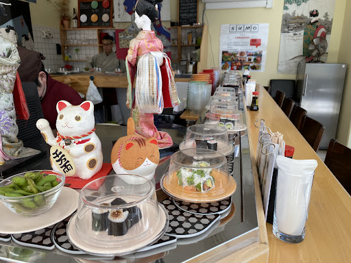 Wir waren gerade eben dort essen und wurden leider sehr enttäuscht. Für Personen, die öfter Sushi essen gehen und hier somit auch einen Vergleich haben, ist der Laden absolut nicht zu empfehlen. Die guten Bewertungen kann ich überhaupt nicht nachvollziehen und ich empfehle allen die hier gut bewertet haben, mal die Augen zu öffnen und einen anderen laden zu testen. Das Sushi ist geschmacklos, fad und die Saucen, die sie teilweise auf die Rollen klatschen, sind angetrocknet. Auch die Frühlingsrollen und Gyozas waren kalt und matschig von der Sweet Chili Sauce die direkt darauf platziert wurde. Die Teller fahren endlos lang UNGEKÜHLT auf diesem Band durch den warmen laden. Die Sushiköche gehen während der Zubereitung ans Handy und fassen danach den Fisch wieder an, ohne sich die Hände zu waschen. Als ich das gesehen habe, war’s für mich sowieso vorbei. Preis-Leistungs-Verhältnis ist auch nicht in Ordnung, dazu noch eine sehr schweigsame Bedienung, die uns die Frühlingsrollen berechnen wollte, obwohl die so durchgematscht und kalt waren, das wir sie nicht gegessen haben. Nicht mal ein entschuldigendes Wort kam über die Lippen. Wir werden in den Laden jedenfalls keinen Fuß...