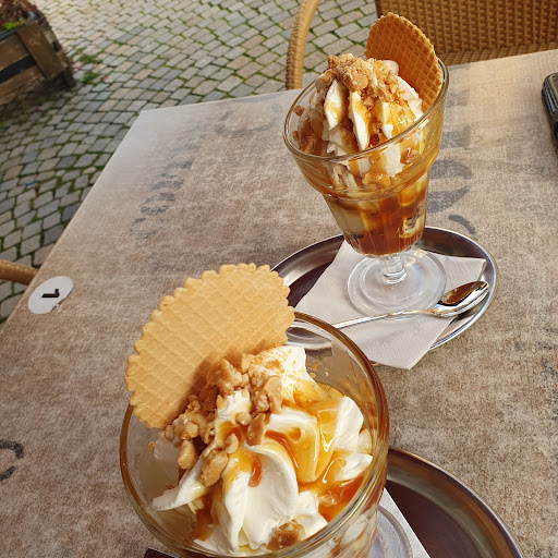 Auf der Suche nach einem Restaurant in Haßfurt fanden wir dieses Café (Restaurants waren alle geschlossen oder hatten Urlaub). Es gab eine leckere Nougat -Torte und Kirschkuchen mit reichlich Kirschen. Der Service war schnell und sehr freundlich. Man konnte draußen an der Straße sitzen und die einheimischen Motorradfahrer genießen, welche mit lautstarken Fehlzündungen für die akustische Unterhaltung der meist älteren...