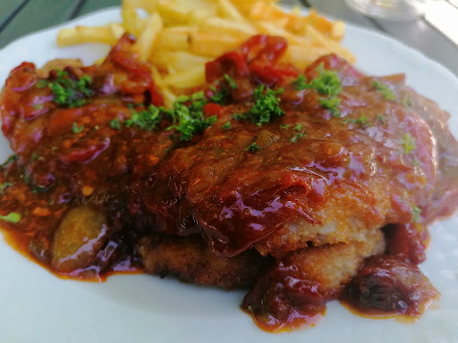 Read moreWir waren gestern das zweite Mal dort. Das erste Mal hab ich ein Jägerschnitzel gegessen, das war na ja mit einer seltsamen Geschmacksnote. Gestern waren wir zu sechst. Ich hatte eine Bauernpfanne mit Bratkartoffeln, Fleisch und geröstetem Gemüse. Bratkaroffeln gingen, Fleisch war ok... aber das Gemüse kam aus der Tüte. Warm gemacht, das wars. Ein Spargeltoast war: Toast, gekochter Schinken, Spargel, literweise Sauce Hollandaise aus dem Tetrapack und Käse. Schmeckt scheußlich und war eine furchtbare Komposition. Ein Putenschnitzel mit Pommes war in der Friteuse totgebacken, furztrocken, ungenießbar. Wurstsalat schmeckte nicht und das Rumpsteak wurde auch nicht aufgegessen. Die Bedienung war nett, aber schlicht überfordert....