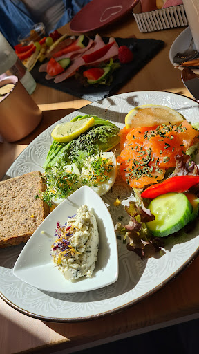 Read moreLeider keine gute Erfahrung. Die Bedienung war von Anfang an unfreundlich und hat uns nicht mal ausreden lassen. Man merkte einfach, dass sie überhaupt keine Lust hatte. Als wir ihr den Namen für die Reservierung sagten wies sie erstmal ab und war davon überzeugt, dass es die Reservierung nicht gibt. Als das geklärt war und wir bestellen durften war sie auch total genervt von uns und wurde richtig pampig als man noch kurze Fragen zu Gerichten stellte - Bei dem Aufstrich des Hauses handelt es sich laut Bedingung um einfachen Frischkäse ohne allem. Leider nichts Besonderes und somit nicht bestellt. Die Smoothiebowl ist auch absolut nicht zu empfehlen. Auf den ersten Blick nett angerichtet aber es handelt sich dabei nicht um einen Smoothie sondern eher um eine Art Joghurt. Die Banane die in der Bowl rein geschnippelt war, war leider noch komplett mit Schale!!! Ich denke nicht, dass das geplant ist, dass man erstmal auf eine Bananenschale rum kauen darf. Leider konnte ich auch direkt sehen, wie meine heiße Schokolade angerichtet wurde. Dabei wurde zuerst Kuhmilch ich die Tasse geschüttet und als die Bedingung merkte, dass das falsch ist, hat sie diese wieder ausgeleert und in die gleiche Tasse dann die Hafermilch gekippt. Fazit: Speisen und Getränke sowie auch so manches Personal lassen zu Wünschen übrig und für veganer...