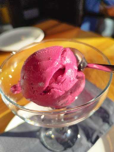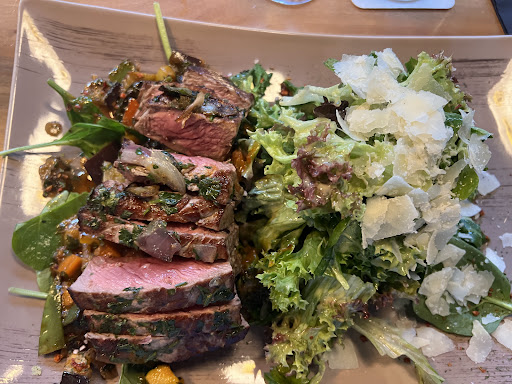 das essen: der geteilte tapas-vorspeisenteller war äusserst delikat und wenn der käse auch noch selbst gemacht worden wäre, es hätte uns nicht gewundert... kalbs-involtini und doraden filets mit selbstgemachten nudeln bzw. kartoffelpürée und gem. gemüse, alles auf den punkt, sehr leckere saucen. dessert: aus platzgründen bei den tischnachbarn abgeguckt: créme brûlée in einer flachen!!! form, seltenheit in deutschland und für franzosen ein muss. ist beim nächsten mal dran!!! also: das dritte plus.