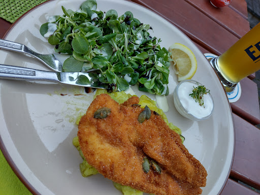 Unscheinbares Lokal mit kleinem Biergarten. Wir konnten im überdachten Freien Platz nehmen und wurden sehr freundlich bedient. Der Schweinekrustenbraten verdient seinen Namen. Er kam mit einer reschen Kruste, Kartoffelknödeln und Krautsalat daher - empfehlenswert. Wirklich überraschend war jedoch das Backhendl - schön paniert und ausgebacken, auf einer ordentlichen Portion Kartoffelsalat mit Kürbiskerne und Kürbiskernöl - sehr lecker. Dazu passten der Blattsalat, ebenfalls mit Kürbiskernöl, und die Crème Fraiche sehr gut. Insgesamt eine gelungene Kombination, etwas außerhalb der ausgetretenen Pfade. Auch der selbstgemachte Kuchen zum Nachtisch konnte überzeugen. Ingesamt hat es hier eine zwar nur eine kleine Karte, diese kann dafür mit Besonderheiten aufwarten. Die Preise sind keine Schnäppchen, jedoch der Qualität und der Kreativität angemessen. Innen verspricht das Lokal Gemütlichkeit. Die sanitären Anlagen sind in die Jahre gekommen, insgesamt aber ok. Ähnliches trifft auch für den Spielplatz zu. Verwunderlich, dass es nur so gering frequentiert wird. Gut für den, den es spontan hier her verschlägt, denn sehr viele Parkplätze gäbe es hier...