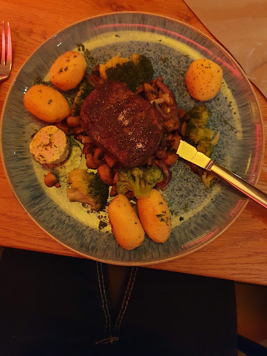 Speisen geschmacklich gut, jedoch hapert es noch am Service. Nach dem Abräumen der Teller hat sich für 40 Minuten niemand vom Service am Tisch blicken lassen. Blickkontakt funktionierte hier leider nicht. Nachdem am Tresen die Rechnung von mir gewünscht wurde, dauerte es (gefühlte) weitere 8 - 10 Minuten, um zu bezahlen. Ich hätte gern noch einen Degestiv genommen, aber dann den Obstler Zuhause vorgezogen. Das Ambiente ist optisch ansprechend, jedoch zog es am Fenster, sodass man ohne Schal nicht sitzen konnte. Es war nicht warm, obwohl Heizlüfter...