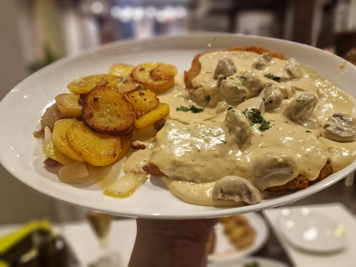 Das Rumpsteak war mega gut und das Schnitzel ebenfalls. Dazu Kartoffeln.
