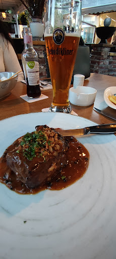 Read moreWir waren heute zu dritt dort zum Mittagessen. Leider war der Besuch enttäuschend. Bestellt wurde ein Grillteller, aus meiner Sicht und aus der Sicht des Speisenden ok. Preislich auch noch in Ordung. Was wiederum aus meiner Sicht nicht so dolle ist: Ein Teller Schweinefiletmedallions mit Bratkartoffeln, Gemüse und Sauce Hollandaise. Leute, ganz ehrlich, wenn ich den Kellner zwei mal frage , ob das Gemüse aus der Dose ist und die Antwort ist zwei mal nein, und ich noch scherzhaft frage welcher Koch die offensichtlichen Tk Möhren denn so schneiden könne, ich dann anschließend als Antwort bekomme das Gemüse sei aus der Tüte, dann kann ich darüber wirklich nur schmunzeln. Sauce Hollandaise natürlich auch. Die Hand voll Bratkartoffeln , die drei trocken gebratenen Medallions und der spärliche Standartsalat mit fertigen Dressing sind, aus meiner Sicht, keine 23.50 wert. Die labrigen Champions auf dem Jägerschnitzel meiner Mutter verkündeten feierlich , dass sie ebenfalls einer Dose entsprungen sind ( und ja, wir wissen wie frische aussehen) und runden so mit den faden Beigeschmack ab. Ich kann die positiven Rezensionen durchaus nachvollziehen, einige Gerichte sehen wirklich super aus. Ich möchte auch nicht sagen, dass es sich grundsätzlich um kein gutes Restaurant handelt. Trotzdem möchte /muss ich an dieser Stelle meine negative Erfahrung mitteilen. Ich hoffe es wird als positive Kritik aufgenommen und nicht als reine Schimpferei. Das soll es nämlich nicht sein. Mein Teller ging zurück und wurde auch nicht berechnet was völlig ok und fair ist. Nachfragen gab es keine seitens des Personals. Gut, war auch ziemlich voll. Aber trotzdem. Es war vermutlich das letzte Mal. Und wie Sie möglicherweise wissen hat meine Familie dieses Restaurant die letzten 20 Jahre des öfteren...