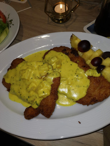Read moreIch fange positiv an: Zum Essen gehen ist das Restaurant zu empfehlen denn Essen ist gut Gruß aus der Küche Klasse. Getränke gut. Service freundlich. Aber meine Rezensionen sind immer ehrlich und es gibt auch 2 -3 Dinge zu verbessern. Negativ bewerten muss ich wenn man bei 10 Grad Außentemeratur das Lokal betritt sämtliche Türen Sperrangelweit aufstehen, das ist schon kalt. Nach unserem Eintreffen wurde eine Tür geschlossen,und die zweite erst 20 Minuten später.Zu Kalt es zieht indiskutabel. Aber die Abhilfe wäre schnell erledigt,nämlich zur regulären Öffnungszeit Tür zu. Eine steile Treppe zu den Toiletten,wo das Licht sich im Keller Je nach Bewegung an und ausschaltet. Du bist einige Sekunden zumindest immer im dunklen fremden Keller. Für mich kein Problem,aber für Menschen mit Ängsten unannehmbar. Auch das ließe sich abstellen. Das dümmste ist das es keine eigenen Parkplätze gibt. Man muss von verschiedenen Parkplätzen laufen,was für Gehbehinderte Menschen nicht immer gut ist,genauso die steile Treppe zur Toilette,aber das lässt sich nun mal nicht ändern. Noch ein kleiner Tipp: Personal die sich im Gastraum bewegen,ob Sie im Keller Ware holen,oder Ihren Dienst antreten, auch wenn Sie kein Servicepersonal sein sollten,weiß ich nicht,könnten auch ruhig die Gäste mit einem einfachen Hallo grüßen. Das könnte man sich ja...