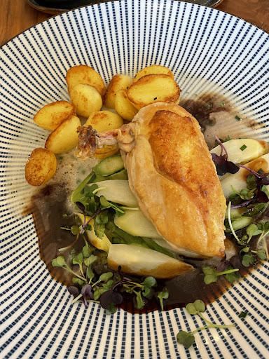 Read moreWaren mit sechs Leuten dort. Mir hat das Ambiente gut gefallen. Ist aufgemacht in verschiedenen kleinen Räumen einer alten Villa. So als würde man in einem Speisezimmer sitzen in dem verschieden grosse Tische stehen. Entgegen vorheriger Bewertungen fand ich es nicht zu laut dort. Das Servicepersonal ist sehr freundlich. Die Speisen waren lecker und einfallsreich. Wir hatten alle verschiedene Gerichte so dass eigentlich fast alles von der Karte auf unserem Tisch war und jeder von uns war zufrieden. Allerdings musste ich Alles nachsalzen was ich aber als nicht schlimm empfunden habe. Man kann auch sicher sehr nett draussen sitzen. Es stehen aussen Loungemöbel in denen man an schönen Tagen sicher ganz nett einen Aperitif trinken kann. Wir werden wieder hingehen. 4 Sterne weil es sehr gut war aber noch eine Schippe....bei dem...