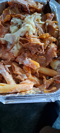 Der Chef hat sich der Makkaroni mit Dönerfleisch und Käse überbacken persönlich angenommen. Die angeblichen Makkaroni sind Penne (siehe Bild). Diese kamen aus der Kühlug in eine Aluschale, darauf Tomatensoße, Kochsahne, Fleisch und Käse. Das ganze so lange in den Ofen bis der Käse geschmolzen ist. Raus aus dem Ofen, Deckel drauf, neben hingestellt. 5 Min später kam auch die Pizza aus dem Ofen. Dann stand beides weitere 4 Minuten rum bis einer der Herren auf die Idee kam zu kassieren. 3 Minuten später angekommen - futtern. Die Pizza war noch "heiß" aber die Nudeln kalt, in der Mitte Soße, Sahne, Nudeln sogar noch Kühlschrank kalt. Auf der ganzen Line versagt und das wäre nichtmal eine Stern wert! Versuch, 2x verkackt, schade!