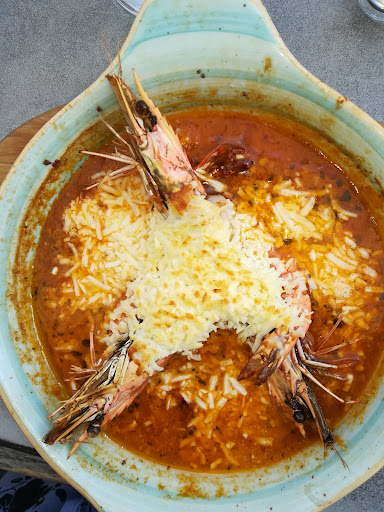 Read moreSehr empfehlenswert. Ich besuchte das Lokal bisher zweimal, es fiel beide Male sofort als erstes das herzliche, freundliche Personal auf (also von allen Mitarbeitern fühlt man sich hier einfach Willkommen geheißen, :-) .) Das Restaurant ist schön eingerichtet, und auch außen ist es nett zu sitzen. Bisher fand ich das Essen,welches ich aus griechischen Restaurants in Deutschland kenne, nicht so besonders erhebend ( eher vorwiegend sehr fettig, uninspiriert, gefühlt " schnelle gastronomische Abfertigung", schmeckt schon, aber wie eben ein Burger von ner Fastfoodkette auch "gut" schmeckt, wie Imbissbude, leider) , hätte ohne Einladung auch stets was anderes gewählt. Aber, ich wurde hierhin zweimal eingeladen und mag dieses griechische Restauran nun sehr gern. - Das erste Mal hatte ich nicht viel Hunger, somit "nur" eine Vorspeise bestellt, Vorspeise :"Scampi" (mit Feta überbacken). Sehr lecker, und ich sah und schmeckte, dass es mit Liebe zubereitet wurde, schön angerichtet auch. es sah schon toll aus und hatte tolle Aromen. Übrigens war es mehr als ausreichend,ich war seeehr satt.... und das andere Mal zum Mittagstisch: sehr guter Preis erstmal. Und es geht sehr zügig (was ja wichtig ist, wenn man in der Mittagspause kommt), - Es gibt eine Vorsuppe und dann das gewählte Hauptgericht. Die Vorsuppe variiert, wie meine Begleitung sagte, z. B. Tomatensuppe mit Reisnudeln. Als wir essen waren, gab es eine Hühnerbrühe mit feiner Hühnerfleischeinlage, sehr lecker.Direkt nachdem wir ausgelöffelt hatten, kam der Hauptgang. Ich hatte gewählt: "Rinderleber+Gyros mit Pommes und Tzatziki". Die Portion war perfekt, der Teller schön mit Salat angerichtet. Alles schmeckte super, und vor allem die Leber: -schön gegrillt, innen saftig zart.... hier kann man sich wohlfühlen und zum angemessenen Preis gut verweilen und speisen.. Fotos : Vorspeise "Scampi", Hauptspeise "Souflaki" und eine weitere Vorspeise (ein Salat? ) , hab vergessen, was, jedenfalls sahs ansprechend aus und schmeckte demjenigen sehr gut.... Liebes Team vom HERMES, Danke für eure Arbeit, das leckere Essen und eure Herzlichkeit, ihr seid immer einen...