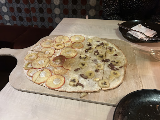 Was die Auswahl angeht, die kann sich sehen lassen. Neben den Klassikern und zeitgemäß natürlich einer umfangreichen veganen Auswahl, liebten unsere Kinder den "Süßen Affen". Dies habe ich so wirklich noch nicht gekannt. Warmer Flammkuchen mit Banane und so etwas wie Kinder-Schokolade oben drauf. Klang für mich im ersten Moment erstmal ungewöhnlich, war aber sehr lecker! Unsere Empfehlung!
