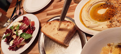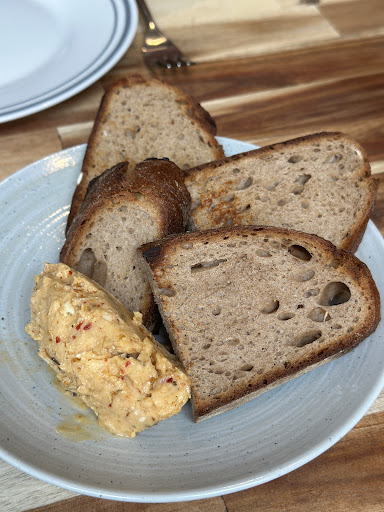 Read moreIch liebe veganes Essen und freue mich immer über neue Restaurants. Hier gefiel mir das Konzept der shared Plates. Leider hat mir dieses Restaurant trotzdem nicht zugesagt. Zum einen hat die monatlich wechselnde Karte im Dezember einfach nicht meinen Geschmack getroffen, zum anderen war nicht alles auf der ausgewählten kleinen Speis- und Getränkekarte verfügbar. Unsere Kellnerin war sehr freundlich aber sehr unerfahren, das in Kombination mit einer Karte die keine Details verrät war wirklich recht ungünstig. Das Foccatia mit Dip war sehr gut, zum Teilen nur absolut ungeeignet, es sei denn alle am Tisch zupfen sich von einem kleinen Streifen Brot etwas ab. Die Waffel mit Birnen war geschmacklich interessant, aber wieder ein großes Stück und nicht ideal zum Teilen (siehe Foto). Die Waffel etwas hart, die Creme wird einem schnell zu viel. Der Sirup und die Beeren sehr gut. So zog es sich durch den ganzen Abend. (Der Cheesecake war kein Kuchen sondern ein Vanille-Dessert im Glas). Wer gern experimentiert und nicht enttäuscht ist, wenn etwas anderes kommt als erwartet ist hier richtig. Tipp: Das Ambiente könnte aufgewertet werden, wenn die Wände vollständig gemalert sind, so sieht es...