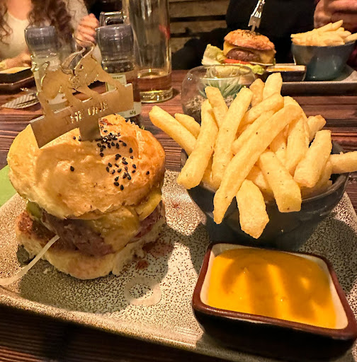18:50 Essen bestellt und dann kam lange nichts. Wir fühlten uns vergessen. Auf unsere Nachfrage hin, dauerte es dann noch mal eine Weile bis das Essen kam. 20:15 war das Essen am Platz (2x Burger und 2x Steaks). Da hätte es theoretisch losgehen können, aber es mangelt noch an Besteck. Man erklärte uns dann, dass die Steaks auf Grund der Garmethode lange dauern und es sehr voll ist, man bat dies zu entschuldigen. Es gab 5 Shots - keine Ahnung was das war - viel zu süß, für meinen Geschmack…Für unseren Fahrer gabs Apfelsaft mit Zimt?! Da hab ich auch schon creativeres gesehen. Darauf, dass die Steaks so lange dauern, hätte man schon mal hinweisen können.