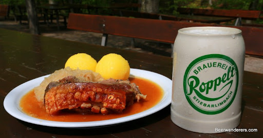 Der Roppelt Keller in Stiebarlimbach war früher ein Geheimtip, den wenige kannten. Das ist aber lange her. Mittlerweile wird es am frühen Nachmittag schnell voller. Um so schöner, daß der Bierkeller sehr viel Platz bietet und dies größtenteils im Wald unter schönen, alten, schattigen Bäumen. Er läßt sich sehr gut erreichen, egal, ob mit Auto, Rad oder zu Fuß (von Forchheim Kellerberg 2h zu Fuß...)