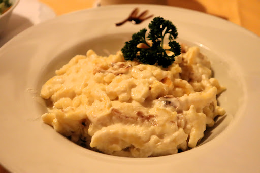 Essen kam dann jedoch schnell und war von der Temperatur angemessen. Entenbrust mit Kloß war solide und kann weiter empfohlen werden, das Schäuferla jedoch hatte leider keine knusprige Kruste wie man es erwartet, wirkte eher als läge es schon etwas länger auf der Seite, daher hierfür keine...