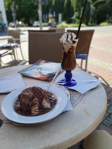 Read moreMeine Eindrücke waren von Anfang an recht positiv. Ein sauberer Gastraum mit großer Trennscheibe zur dazugehörigen Eisdiele lässt das Lokal hell und freundlich erscheinen. Leider ist die Garderobe von den Tischen aus nicht einsehbar, also besser die teuereren Pelzmäntel mit an den Tisch nehmen. Die Minestrone war als Vorsuppe ganz in Ordnung, etwas mehr Gemüse und Würze hätten ihr ganz gut getan. Mein Hauptgericht, ein Lachssteak mit Beilagen war sehr gelungen und frisch, gute Sosse, Pommes etwas blass, dafür ein sehr ansprechend angerichteter Salat. Die süßen Nachspeisen werden im angeschlossenen Eissalon gefertigt und lassen von Menge und Qualität her keine Wünsche offen. Die Getränkeversorgung war etwas schleppend. Mit gesteigerter Aufmerksamkeit hätte der freundliche Kellner mehr verkaufen können. Alles zusammen genommen war es ein gelungener Besuch mit einigen wenigen...