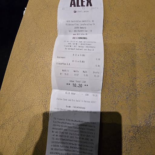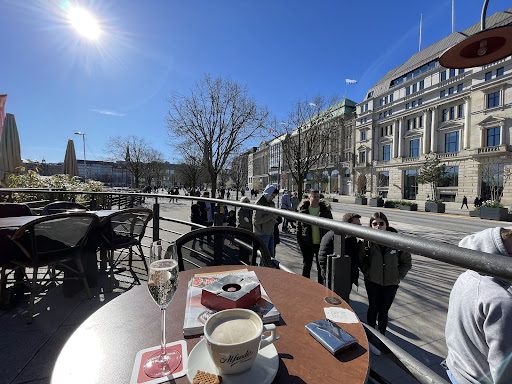 Read moreAm 18.7.25 besuchte ich mit einem Besucher aus dem Ausland diese HAMBURGER INSTITUTION mit Blick auf die Binnenalster. Zuvor gab es vom Eingang Jungfernstieg eine Einlasskontrolle. Dann wurden wir nach oben weitergeleitet, durften drinnen am Tresen vorbei uns draußen hinsetzen.