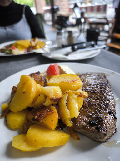The steak and potatoes were actually good but a tad too salty. During payment, I had to go inside to ask for the bill and he mumbled something outside and the waitresses who's vibes seems off went in took a piece of paper with out orders on it. The overall vibes seems unfriendly and no warm coming despite the place being relatively empty. To set in context, while we were outside eating, multiple couples and and people went in and came out. I also overheard them saying too hot and stuffy inside before leaving, my guess to find another place to dine.