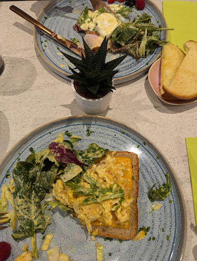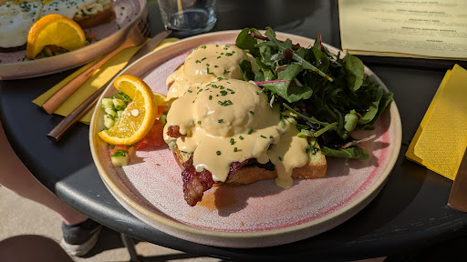 Die Portionen waren sehr klein, was vor allem auffällt, wenn man den ganzen Salat zur Seite packt. Das Eggs Benedict (für 16€) hatte nur EIN einziges Ei. Das andere Gericht war im Grunde eine Scheibe Toast mit Käse, einem Haufen (in Soße getunkten) Salat, etwas Ei und ein bisschen Mascarpone in der Mitte, was nur einen Hauch nach Trüffel geschmeckt hat. Sorry, aber für 15€ ist das zu schwach. Hier haben weder Qualität, Quantität, noch Geschmack gestimmt.