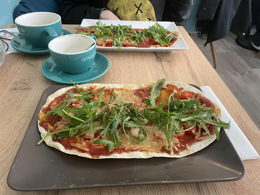 Read moreVegan Friendly! The place is very welcoming, clean, artsy and pretty. Staff and the owner are very sweet and helpful. The owner is a professional cake artist and she bakes marvellous cakes in the kitchen, so the place continuously smells like cake - makes the atmosphere cosy and fills hearts with joy. Coffee is insanely tasty and they have barista vegan milk. There are a few good vegan options on the menu and they even offer vegan dessert - we had apple cake. The vegan flammkuchen (thin and crunchy German focaccia-like thingy) was incredibly delicious and was topped with a generous amount of ingredients. Will...