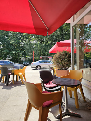 Man hat die Möglichkeit vor dem Café sitzen zu können.