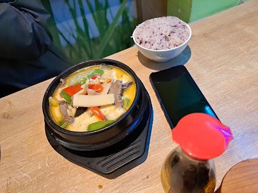 The restaurant has a contemporary and stylish interior, with a combination of dark wood, soft lighting, and Asian-inspired artwork. The atmosphere is cozy and relaxed, making it a great place for a casual dinner with friends or a romantic night out.