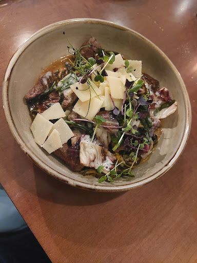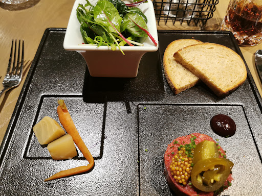 Read moreSchönes Restaurant, aber leider wurde wir vom Essen, sowie vom Service teilweise enttäuscht. Wir waren 1 von 3 Tischen. Hatten Vorspeisen bestellt, die wirklich sehr gut waren und 2 x ein Tomahawk. 1 Tomahawk war leider ein wenig dünner als das andere (was nicht schlimm ist) dadurch war nur das dünnere komplett durchgebraten und nicht mehr Medium. Wir haben die Dame vom Service darauf aufmerksam gemacht und sie meinte das es ihr Leid tut und sie es weitergibt. Als Beilage gab es dazu kleine warme Kartoffeln, Falafel Fries, Pommes und Gemüse. Das Gemüse war leider das Einzige was nicht warm war, sondern als Antipasti gemacht war. Das hat für uns alle leider so gar nicht zusammengepasst. Beim Schnitzel mit Kartoffelpüree, war das Kartoffelpüree leider sehr trocken und durch die offene Küche konnte man sehen das dies aus einer Tüte kam. Vielleicht wurde es bereits vorgekocht, dass weiß ich so nicht es war zumindest nicht frisch gekocht und wie gesagt leider auch recht trocken. Finde es sehr schade, denn wie gesagt es waren den gesamten Abend nur 3 Tische besetzt auf 2 Köche. Bei der Tischreservierung habe ich gefragt, ob es Parkmöglichkeiten gibt und wieviel dies kostet. Der Mitarbeiter am Telefon hat sich extra rückversichert und mich zurückgerufen und gesagt das man kostenlos im Parkhaus parken kann, wenn man Gast ist. Als wir dann gehen wollten habe ich die Service Kraft gefragt wie das mit dem kostenlosen Parken funktioniert und sie hat mich dann darauf hingewiesen, dass dies leider nicht kostenlos und es ihr leid tut. Somit haben wir dann für 2 PKWs noch mal je 10,50€ Parkgebühr bezahlt. Hier auch leider kein entgegen kommen. Schade wir wären gerne nochmal wieder gekommen, aber da hat für uns das Preisleistungsverhältnis...