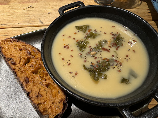 Wir Bestellten uns eine Vorspeise Suppe mit fermentiertem Gemüseeinlage (war sehr lecker und vor dem Servieren wurde die Suppe nochmal aufgemixt) Zum Hauptgang die Tartarvariation und das Rinderfilet. Ich hatte die Suppe noch nicht fertig kam schon das Tartar auf dem Tisch und wollte dann schon die Suppe abräumen. Ich war ja noch nicht ferig damit und teilte dies freundlich mit. Nach 5 minuten fragten wir nach ob das Rinderfilet noch kommt weil wir gerne zusammen Essen. Offenbar wurde dies nicht abgerufen.