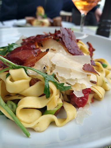 Read moreThe Locks, direkt und schön an der Schleuse in Poppenbüttel gelegen, hat sich zu einem Restaurant mit keinem guten Preis-Leistungsverhältnis und einer ausgestrahlten Routine gegenüber dem Gast entwickelt - leider. Was ist passiert? Erster Gang: Vorspeise. Wildfang Garnelen in Kartoffel-Trüffel-Emulsion mit geschmolzenen Lauchgnocchi. WOW! 17,90 Euro. Auch WOW. Da muss schon was Gutes kommen, dachte ich. 3 Garnelen im Dreieck angerichtet strecken sich dem Himmel entgegen, währen Sie in einer buttrigen Sauce schwammen. Mein Blick schweifte: Wo ist der Rest des angekündigten Mahls? Ach, da, diese kleine Scheibe weißer Glibber über den Garnelen? Die 6 (oder 7? ich habe nicht genau nachgezählt) Nudeln sind so sehr geschmolzen worden, dass sie hilflos herumschwammen und darauf warteten gegessen zu werden, damit dieses Ungleichgewicht der Lebensmittelpräsentation nicht so auffiel. Besser: Die klassischen Tagliatelle mit Pfifferlingen. Frische Zutaten. Sehr (!) naturbelassener Geschmack. So ein kleines Schälchen hausgemachter Pesto für Freunde des additiven Geschmacks wäre angebracht gewesen. Ich konnte natürlich auch die Buddel Olivenöl nutzen, die uns auf den Tisch gestellt wurde. Keine Olivenölflaschen mit Dosierer, sondern gleich eine ganze Buddel. Merkwürdig. Insgesamt gesehen war die Bedienung dagegen eher sparsam - auch mit der Freundlichkeit. Ein Lächeln wäre schön gewesen. Stattdessen war es schon zu viel, aus dem Brotkörbchen die kleine Glasschale mit Brotaufstrich herauszunehmen und auf den Tisch zu stellen. Hier macht jemand seinen Job - aber er mag ihn nicht. Zumindest wirkte es so, ich will niemanden Unrecht tun. Klingt alles sehr penibel? Vielleicht. Aber wenn ich in dieses Preisniveau einsteige, dann erwarten die Gäste auch einen entsprechenden Service, oder? Fazit: Für ein Glas Wein oder ein Bier ja, auch mal einen Salat, aber richtig Essen gehen...