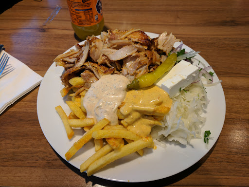 Der Mann am Tresen redete ohne Punkt und Komma um mich so schnell wie nur irgend möglich abzufertigen. Er schaute mir kaum ins Gesicht und nach 20sekunden war alles vorbei. Er hat allen ernstes den Fladen auf den Kontaktgrill gelegt und ihn sofort wieder runter genommen?? Was bitte war das. Weder wurde nur dir geringste Bräune erzielt, noch hat sich die Konsistenz verändert. Der fladen war nach wie vor ROH und elastisch. Das war das unnötigse was ich jeh sah..