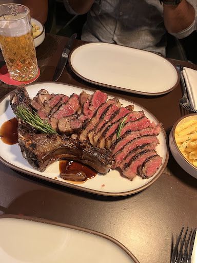 Read moreWenn Sie sich mal so richtig ärgern möchten, müssen Sie hierher gehen! Eins vorweg: Die Qualität der angebotenen Speisen ist sehr gut. Das ist allerdings auch schon das einzig Gute, was es über diesen Laden zu sagen gibt. €18,- für 0,15 l für einen mittelmäßigen Rioja ist schon ein ambitionierter Preis. Die Preise für die durchweg sehr guten Steaks sind angemessen. Das man für jede Beilage und jede Sauce zusätzlich zahlen muss eher nicht. Wir hatten telefonisch für 19:00 Uhr reserviert. Als wir dann um 21:00 Uhr knapp € 300,- bezahlt haben wollten wir zum Abschluss noch eine Flasche Rotwein bestellen. Zu unserer Überraschung wurden wir dann allerdings aufgefordert zu gehen, da 4 weitere Gäste auf unseren Tisch warten würden. Unabhängig davon, dass wir bei der Reservierung nicht darüber informiert wurden, dass es hier für ein Abendessen ein Zeitlimit gibt ist es schon frech, Gäste nach einem Verzehr von € 300,- zum Gehen aufzufordern. Der Wunsch, möglichst viel Umsatz zu machen ist ja nachvollziehbar, allerdings ist es nicht das Problem der Gäste, dass das Restaurant für das hier praktizierte Konzept viel zu wenig Plätze hat. Hier...