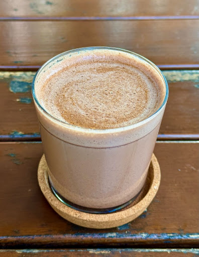 I got the shakshuka, my mom the granola and my husband the stulle deluxe with fried eggs. Yum! We got each of the hot drinks selection and they were...