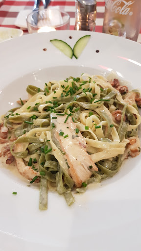 Read moreDie Pizza war sicherlich frisch zubereitet, hat für mich aber eher nach tiefgefroren geschmeckt. Also wegen des Essens würde ich hier bestimmt nicht nochmal hingehen, aber was mich wirklich gestört hat war die Bedienung. Der Kellner schien genervt, obwohl absolut nichts los war und hat bei der Aufnahme der Bestellung völlig unaufmerksam durch die Gegend geschaut und nicht auf das geachtet, was wir gesagt haben. Als ich dann was zu den Pizzen fragen wollte, hat er mich unterbrochen und meinte er komme gleich wieder. Das Essen kam schnell, hat uns die Pizzen einfach hingelegt und ist wortlos gegangen und als wir dann die Rechnung haben wollten und wir nicht gefragt wurden, ob wir getrennt bezahlen wollen, schien er super perplex und hat uns dann rechnen lassen. Wenn ich essen gehe, dann ist mir der Service fast genauso wichtig wie das Essen und hier hat für mich persönlich leider beides nicht gestimmt. Also leider...