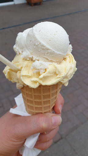 Read moreLeider viel zu teuer ... Die Eisdiele liegt an der auch noch abends gut und laut befahrenen Hauptsstraße und die Außentische stehen vor dem Geschäft. Dafür gibt es Glaswände. Allerdings habe ich nicht feststellen können, ob sie gegen Lärm, Smog oder Corona helfen, da ich mein Eis zum Mitnehmen gekauft habe. Ich bin auch schon besser bedient worden - aber das ist ja nun einmal Tagesform - abhängig und ich war nur einmal dort. Bei einem geschätzten Durchmesser von 5 cm ist die Kugel mit 1,70 € eindeutig zu teuer. Auch wenn noch so viele gute Zutaten drin sind. Es war ein gutes Eis, aber nichts, was in Erinnerung bleibt. Ich habe die Klassiker genommen. Für eine dritte Kugel aus dem ausgefalleneren Sortiment war mir mein Geld zu schade. Daher kann ich hierzu nichts schreiben. Positiv war, dass man eine halbe Portion Sahne bestellen konnte, ohne den vollen Preis dafür zu zahlen. Das ist diesen Sommer wirklich eine schöne Ausnahme von der weitverbreiteten - ziemlich...