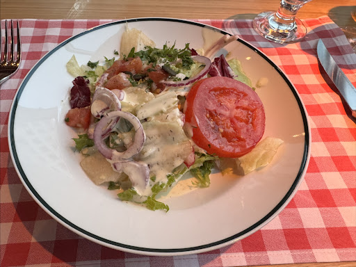 2025.05.14: came by on a Wednesday, when they always have steak as lunch menu. Waited a few miuntes to get a table, then we got served, fast, efficient, nothing too fancy, rathr cold service, which I think is completely fine during these busy lunch hours. Had the salad and the steak. Was about to pay and the waiter said the price, I said I wanted to pay with card. He repeated the price, very obviously waiting for me to say a higher amount than the actual price. Which I could understand, if the service was any slightly better than what is the bare minimum. I mean, yes, they brought the food to our table and the steak was good. But that's it. Noone was especially nice to us or did anything that would make me want to pay extra on top of the base price. If they expect me to pay extra I also expect them to do something extra. Rather than making me feel uncomfortable for not wanting to tip. I guess it works for most people, I also felt pressured, but I don't like this approach. The place is still good, little too loud because of thw acoustics of the inner space, so...