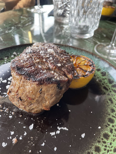 AMAZING food but the service was not especially friendly, and the waiters didn't seem to be professional. We had to call them when needed asking for drinks, menus, ordering food, more drinks etc. and the waiter was unable to help us with our wine choosing. In fact we were just about to leave again before ordering, as the waiter "greeting" us seemed very annoyed with us from we stepped in. We thought it was because it was busy and crowded, but it was just about half full. The atmosphere was what got us to stay, which we were very pleased we did, as the food was truly amazing! Best food I've had for a long time and in generous sizes, so even though it is pricey you don't leave hungry. Perfectly grilled Caesar Salad as a starter and a delicious steak for mains with the side orders being the talk of the evening. Can't remember last that happened.