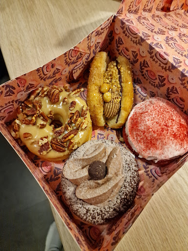 Read moreDie Donuts waren zwar lecker, den Preis von um die 4€ für einen "Berliner mit Loch" empfinde ich aber als viel zu teuer - der Startpreis für einen normalen Donut sollte höchstens 1,80€ betragen oder durch Mengenrabatt günstiger im Stückpreis werden. Aber die 4 Damen hinter dem Tresen müssen ja bezahlt werden - 4, wo eigentlich eine, max. 2 Person ausreichend sein sollte. Der nächste Schock war die nur bargeldlose Zahlung, bitte was? Nur Karte? Und dann wird noch bei der Zahlung darauf freundlich-bestimmend hingewiesen, dass man am Terminal gleich noch Trinkgeld geben kann. Ehrlich gesagt war das "hinweisen" - nein, eher fordern nach Trinkgeld fast eine Nötigung. Ich frage mich, wozu Trinkgeld? Ich hatte lediglich einen Donut zum mitnehmen geordert - Frech! Da gehe ich definitiv nie wieder Donuts kaufen.