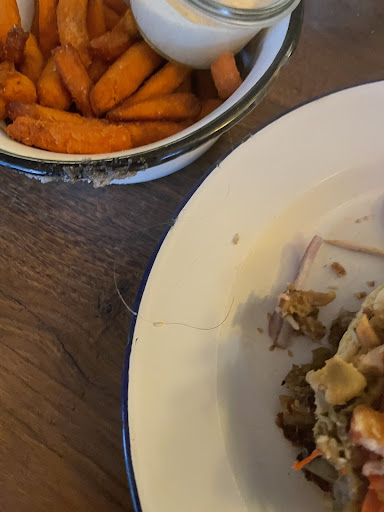 The food was terrifyingly bad. It’s a mystery how a person can take so many ingredients and make it all tasteless. My partner and I even got a brief concern of having Covid. Thankfully was not the case. The most flavorful were: A sauce, which came with sweet potato fries and a hair (photo attached). The patty. In 2023 it’s a shame to use this as a meat substitute. Truly disgusting.