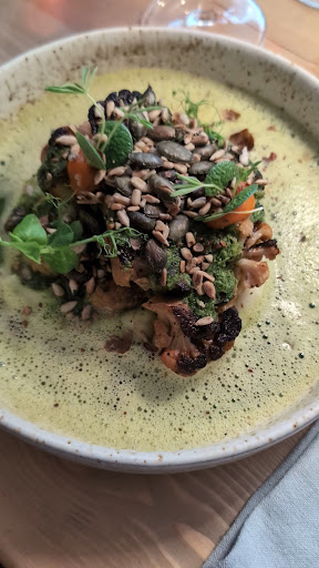Nun meine Kritik: Leider hat es von der Bestellung bis zum ersten Gang extrem lang gedauert - etwas 45min. Das war lang aber noch akzeptabel. Der zweite Gang hat leider dann nochmal genauso lange auf sich warten lassen. Das ist viel zu lang und bedeute für die Person die nur einen Hauptgang hatte, dass sie eineinhalb Stunden nichts zu Essen bekommen hat. Denn der Spargel wurde erst mit dem zweiten Gang des Weidehuhns serviert. Auch wenn das Restaurant für einen Montagabend sehr voll war, geht das nicht. Zur Not hätte man etwas reichen müssen um die Zeit zu überbrücken. Für diese Wartezeit ziehe ich gut gemeint nur einen Stern ab, da der Service dennoch sehr nett und bemüht war.
