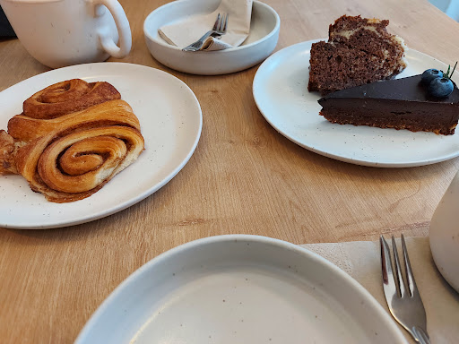 Read moreIt's a Lovely new Café in the Duhlsberg district. Nice variety of food, home made cakes and drinks. The cakes were really good. The Franzbrötchen could be a little more moist and gooey! They were a bit dry to our taste. Everything else was great! The sizes of the big coffees were appropriate, finally! Compared to other places you really get a great value. The place is clean and decorated with cool painting and prints. It was not too noisy, super friendly staff....