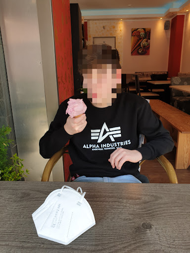 Leider ist es drinnen nicht sehr gemütlich eingerichtet und eng und draußen könnte es auch um einiges schöner gestaltet werden. Vor allem mehr Abgrenzung zur Straße hin und: bitte entfernt die ganzen Aschenbecher von den Tischen. Die stinken und laden die Leute zum Rauchen ein. Da man hauptsächlich Kinder/Familien vor Eisläden antrifft, ist es schade wenn es dann immer mal Leute gibt die dort rauchen.