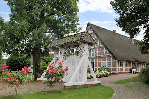 Read moreDieser Hof ist einer der schönsten im ganzen 'Alten Land'. Wunderbar in Stand gehalten - ein Paradebeispiel für Hoochzichdüür und Prunkpforte.