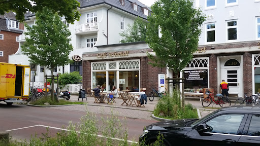 Groß Flottbek ist ehrlich gesagt solch ein Geheimtipp. Und genau dort findet sich auch das Café Schmidt. Wenn man von der Elbe kommt, unter der S-Bahn Brücke durch, erste rechts rein, maximal 50 Meter.